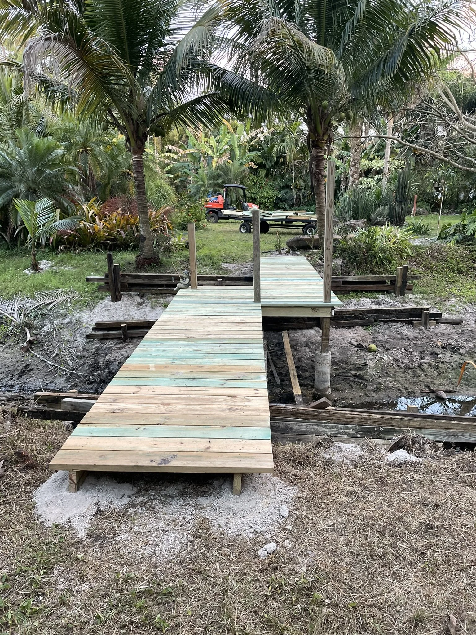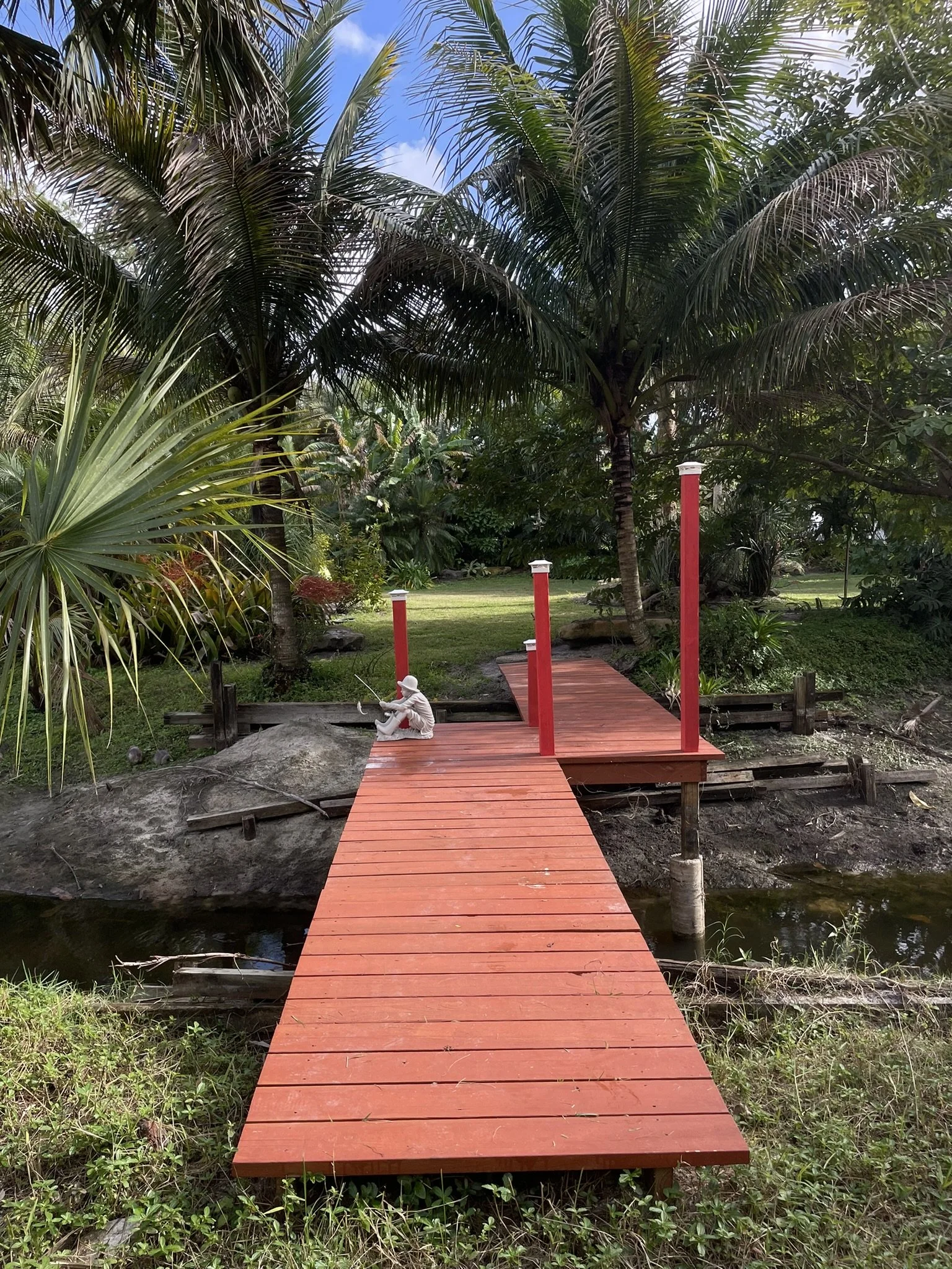 This was a fun project we completed for Tropical World Nursery. The owner wanted a Japanese-style bridge to get to the other side of the pond. A part of me thinks he wanted this build so he could put the little fisher boy on the edge. Either way, this turned out great, and we were happy to do it!