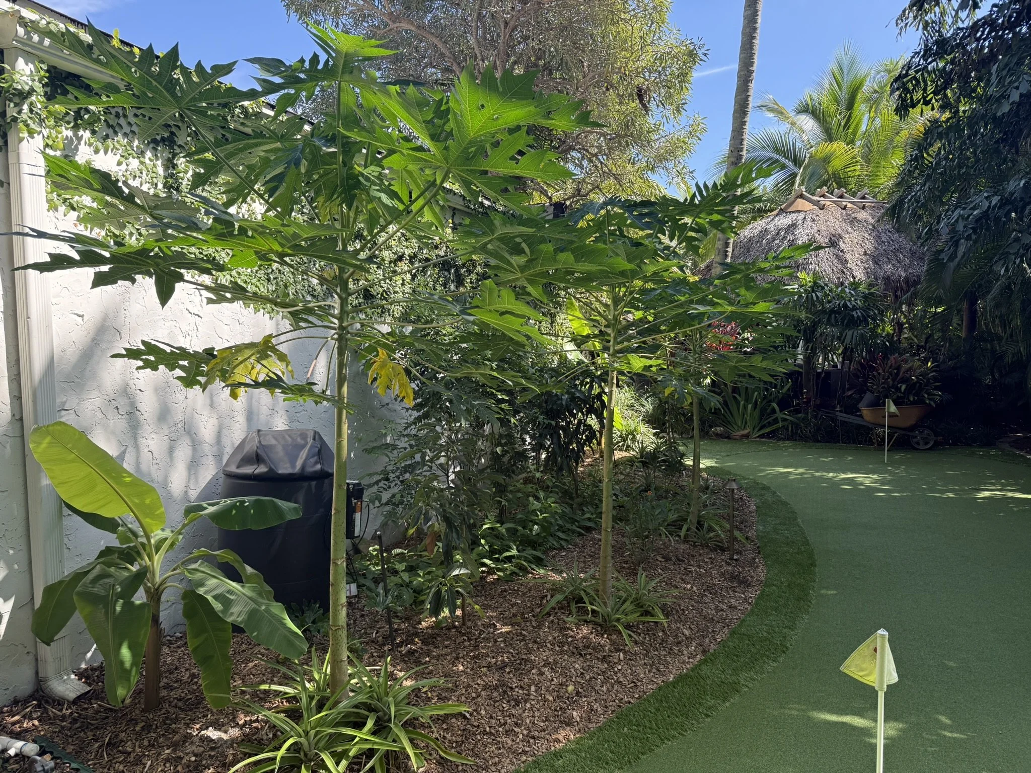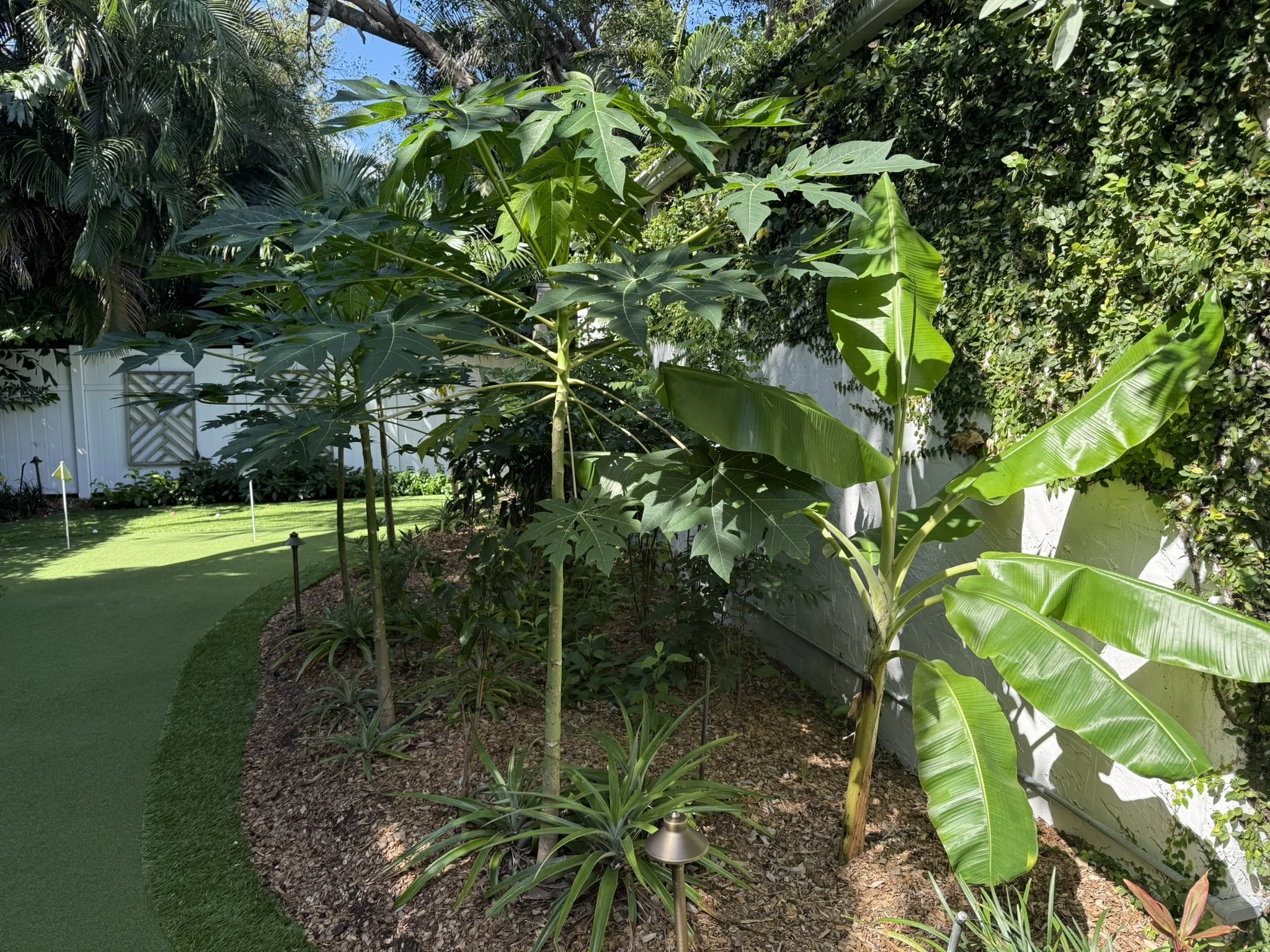 Never underestimate a small garden! We packed in a ton of edible perennials like Longevity Spinach, Okinawan Spinach, Sissoo Spinach, and Katuk. We have two varieties of bananas and three grafted fruit trees that will be kept at a height of 10-15 ft.